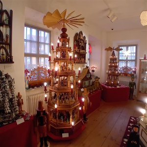 Kunstvolle Pyramiden, traditionelle Nussknacker und wunderschön leuchtende Schwibbögen konnten wir bewundern und bestaunen.